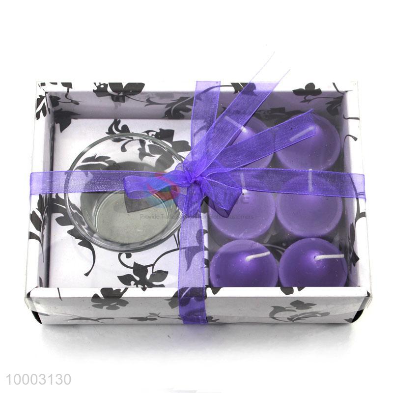 6 pcs purple candle with a glass cup