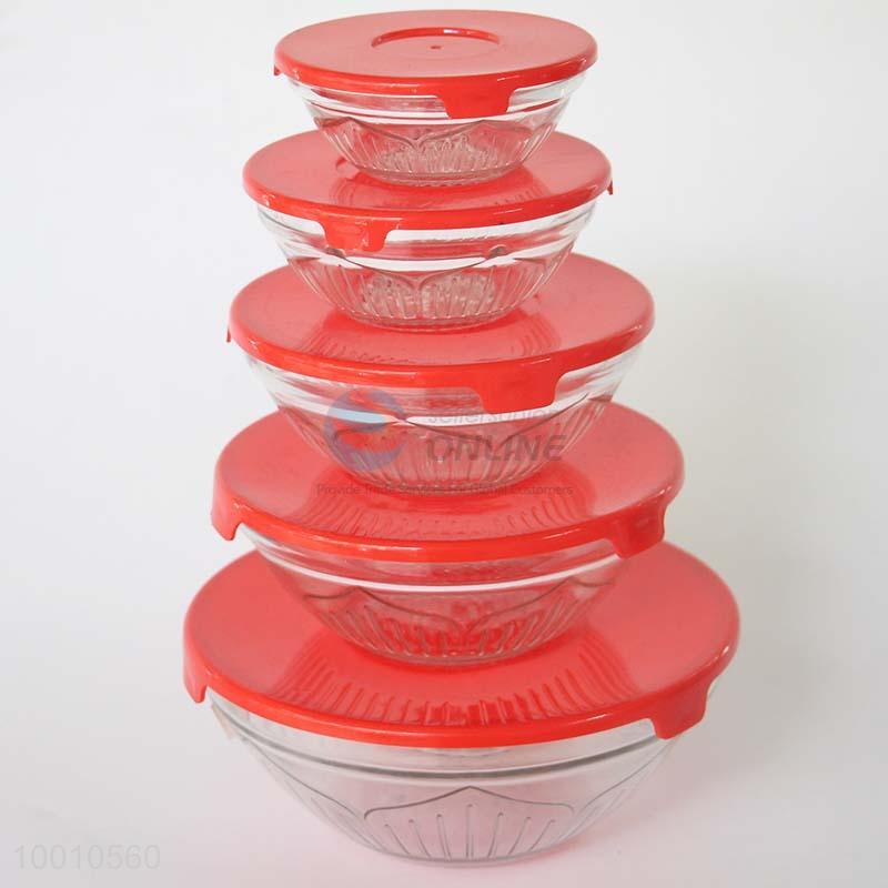Wholesale 5pcs Glass Bowl with Red Cover