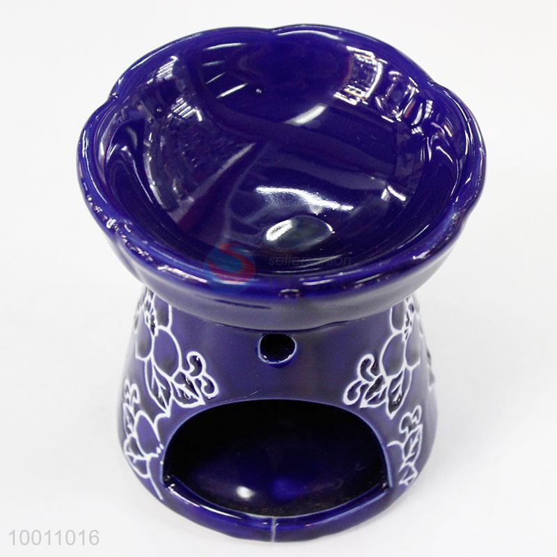 Flower Print Dark Blue Handmade Ceramic Incense Burner