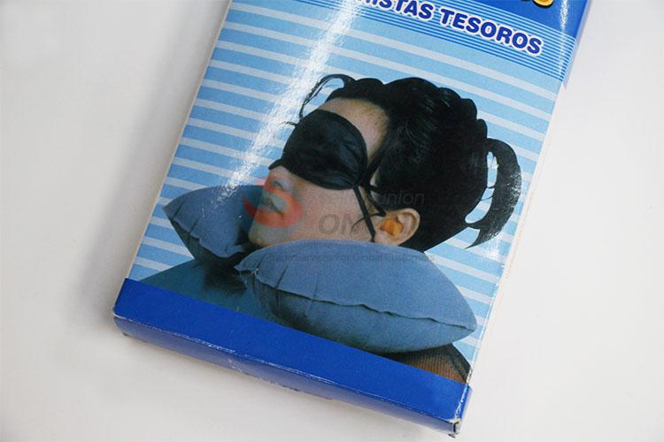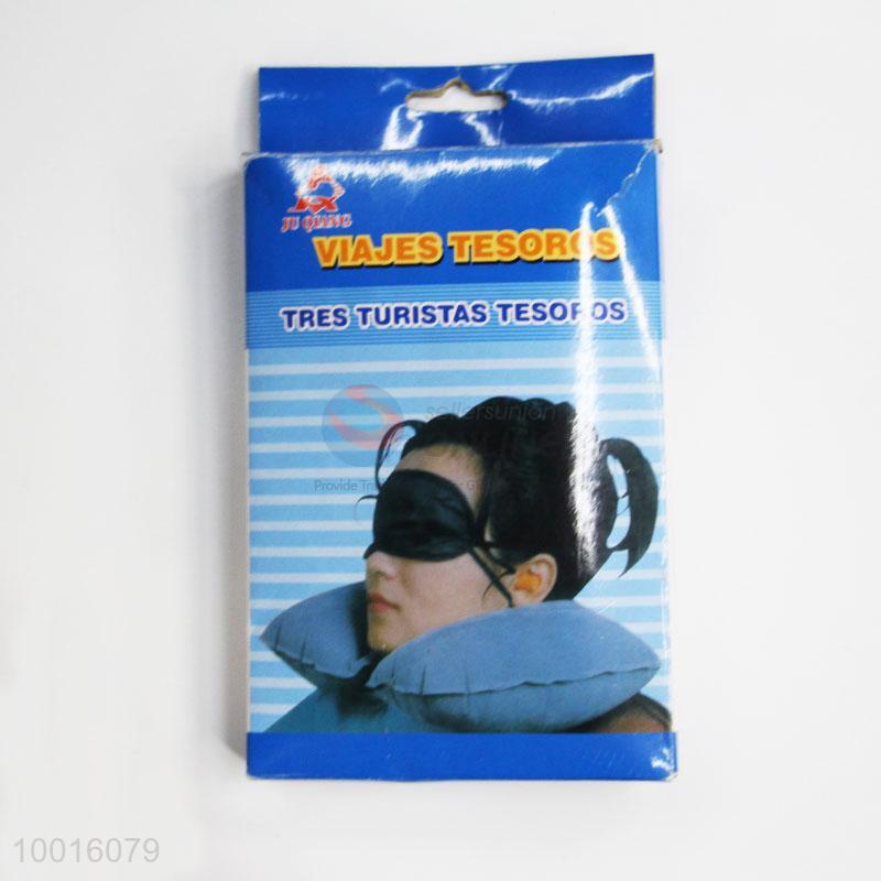 Wholesale Cheap Comfortable Soft Inflatable Air Cushion Pillow + Eye Mask + 2 Ear Plug Trip 3 in1 Travel Set U shaped Neck Pillow