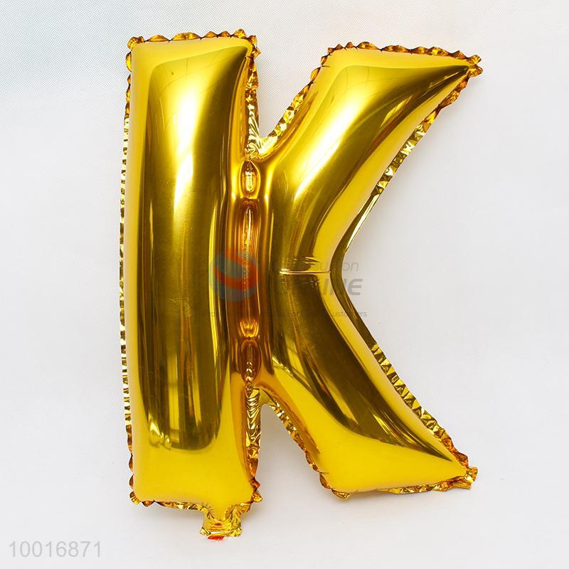 Letter K shaped gold foil balloon