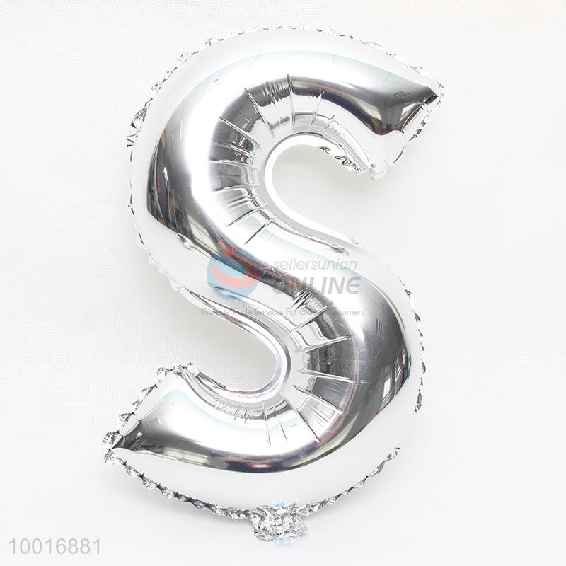 Silver letter S foil balloon