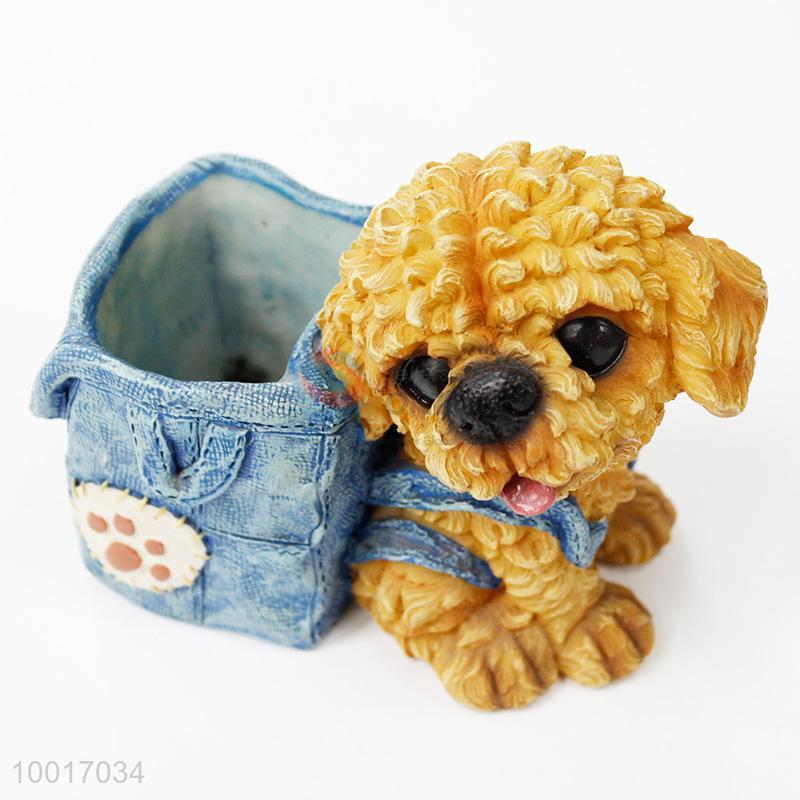 Cute Teddy Resin Dog Model Pen Holder with Backpack