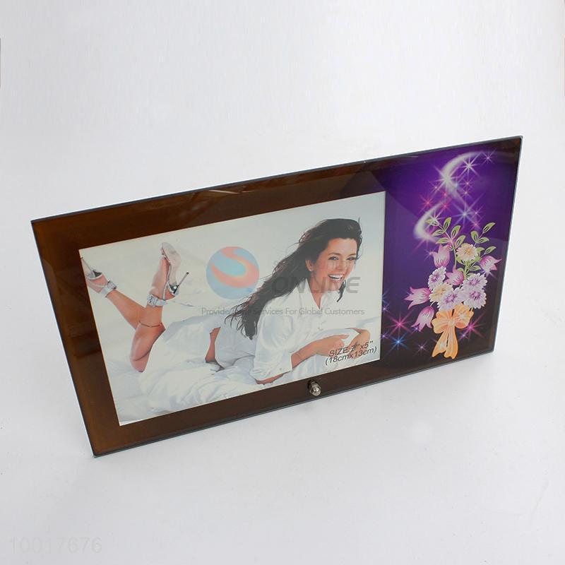 Hot sale brown glass photo frame with flower pattern