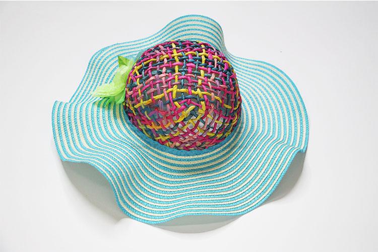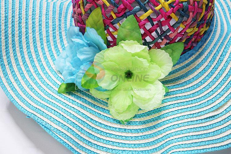 Fashion Blue Big Weave Brim Hat For Beach/Summer