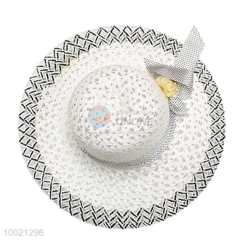 Beautiful White Summer Beach Sun Hat for Women