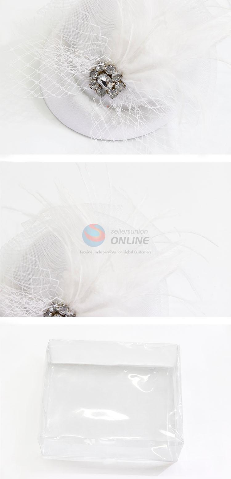 White wedding hats mesh bow with feather hair clips