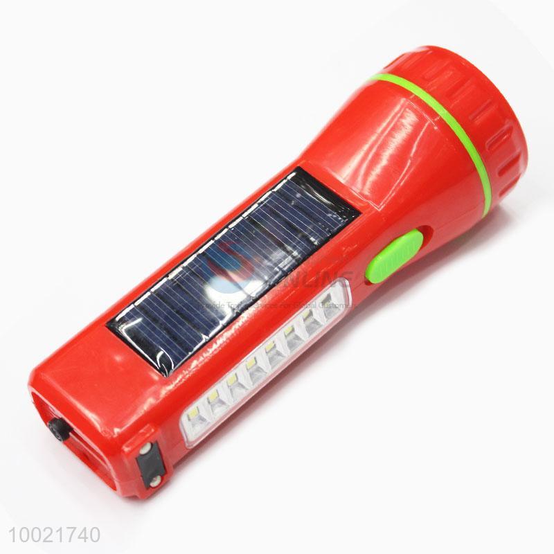 Wholesale Top Sale High Quality Plastic Red Solar Rechargeable Flashlight