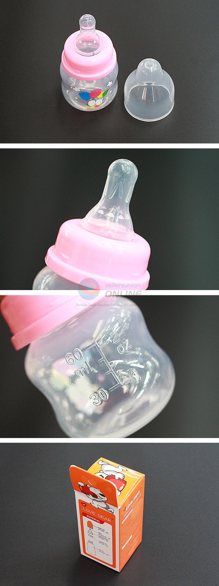 60ml l Cute Pink Feeding-bottle with Rabbits and Balloons Pattern, Milk Baby Feeding Silicone Nipple PP Bottle