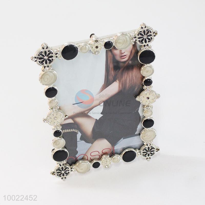 White&black flower diamond photo frame