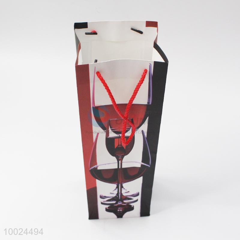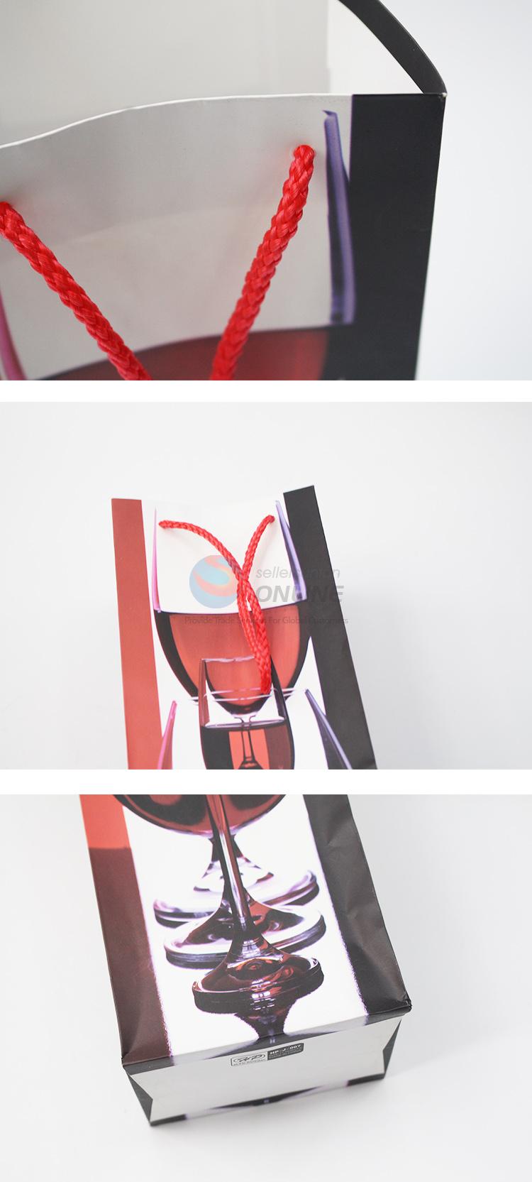 Red&white paper wine bag printed with wine glass