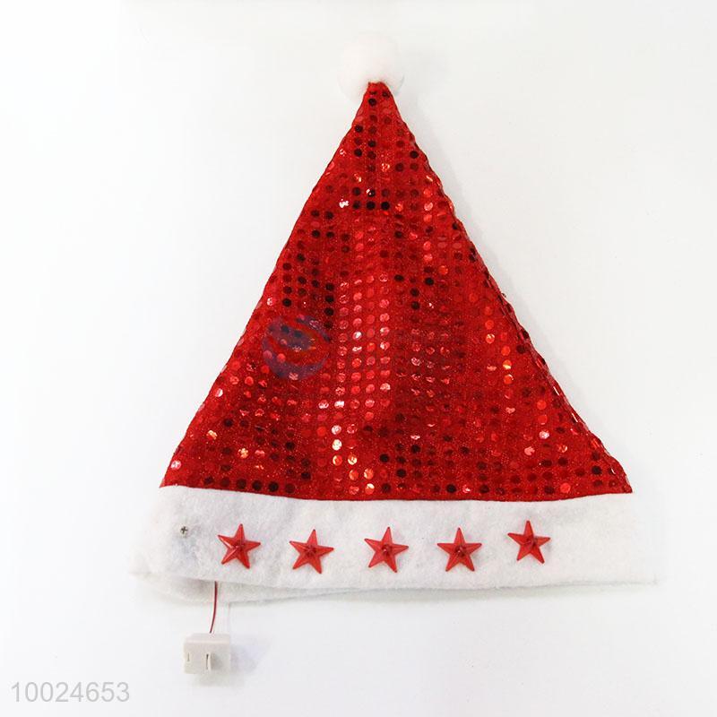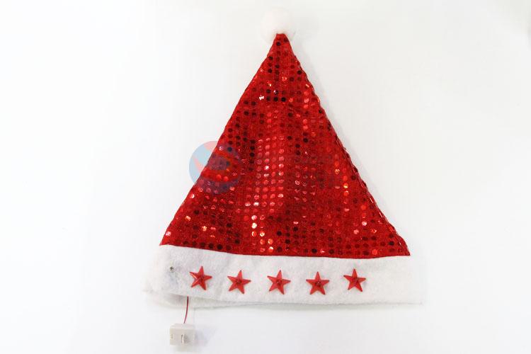 High Quality Paillette Christmas Hat with Light