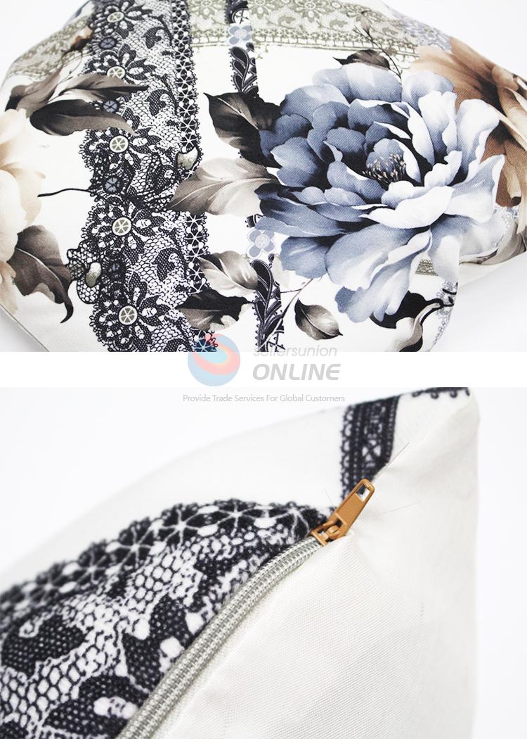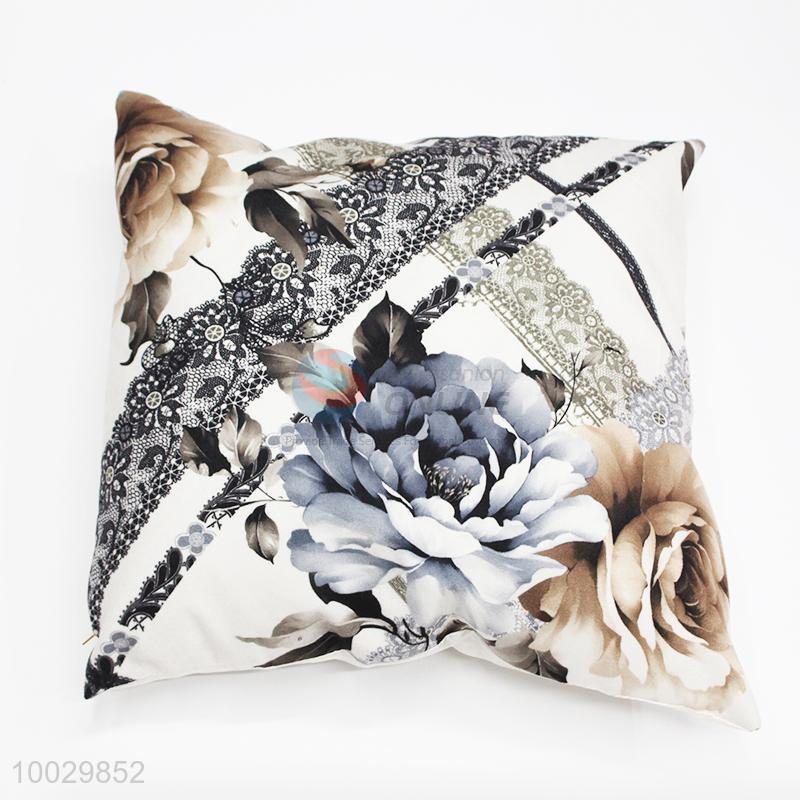 Floral Pattern Square Pillow/Cushion With Lace
