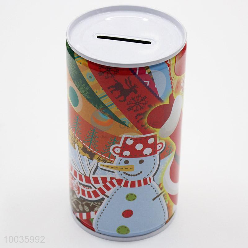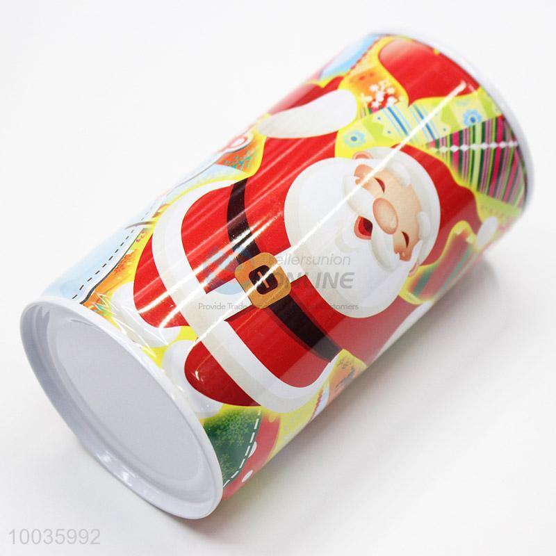 Kawaii Kids Iron Money Box Shaped in cylinder with Santa Claus Pattern