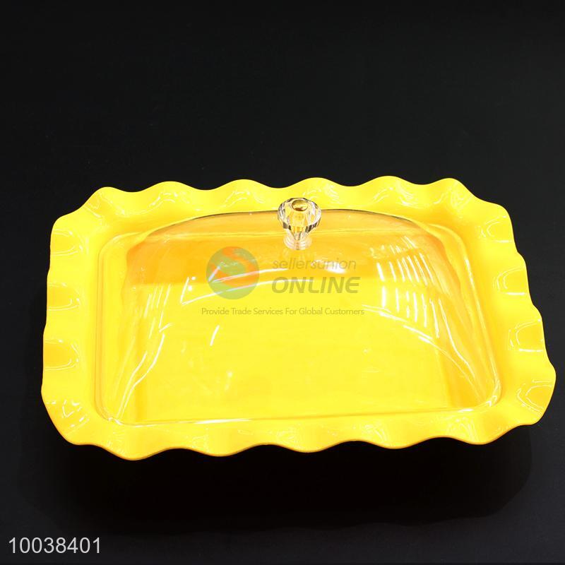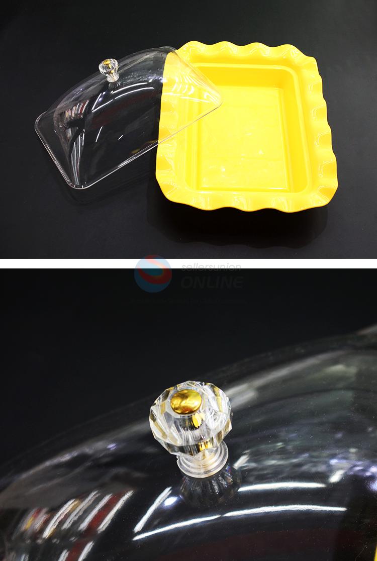 Yellow acrylic rectangle cake/dessert plate with wavy edge&cover