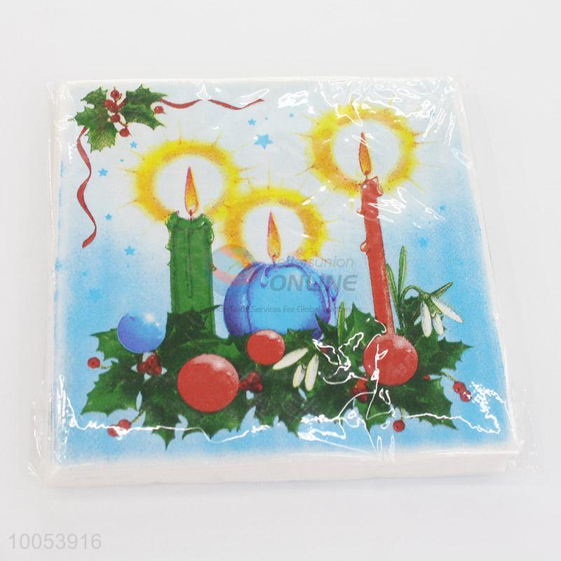 Wholesale 16.5*16.5CM Disposable Eco-friendly Three-ply Paper Napkins with Candles Pattern
