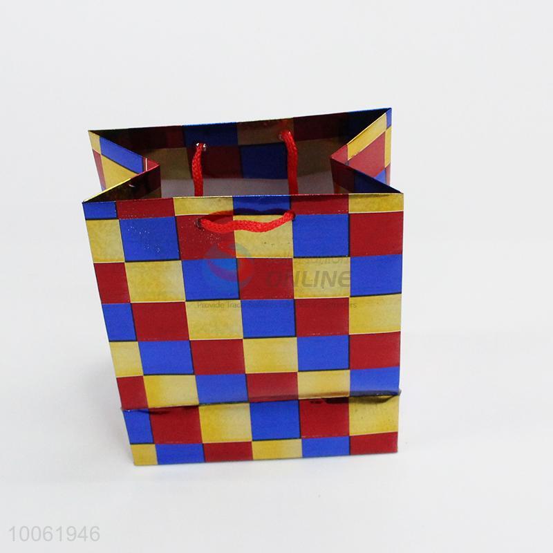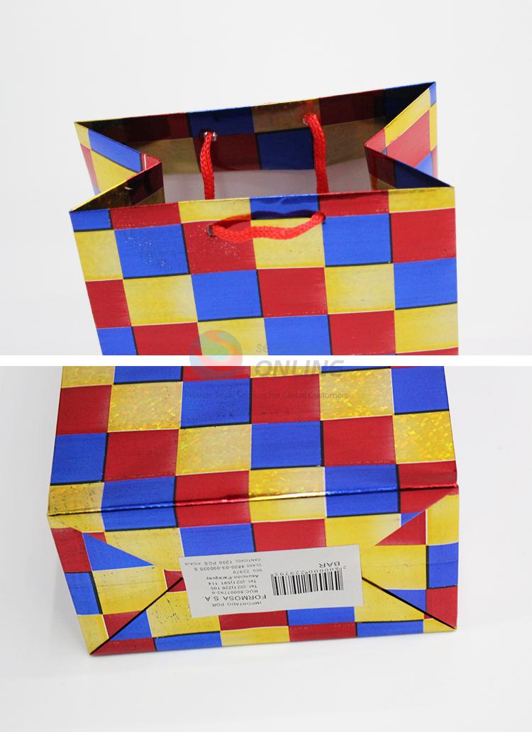 Hot sale colorful grid pattern hologram paper shopping bag
