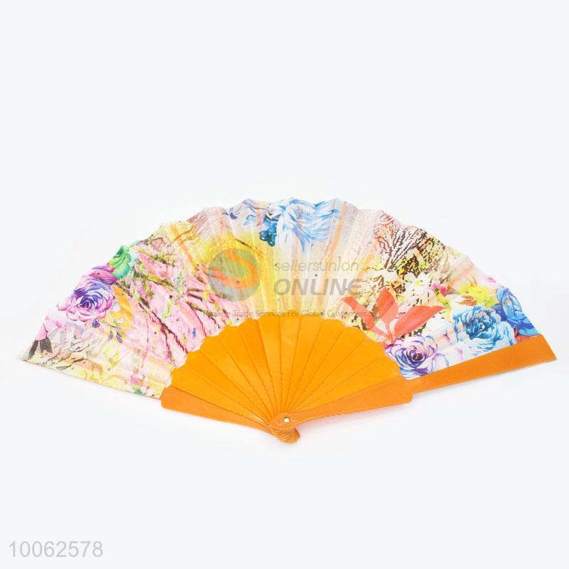 Hot Sale Spain Style Plastic&Satin Orange Hand Fan/Flat Fan