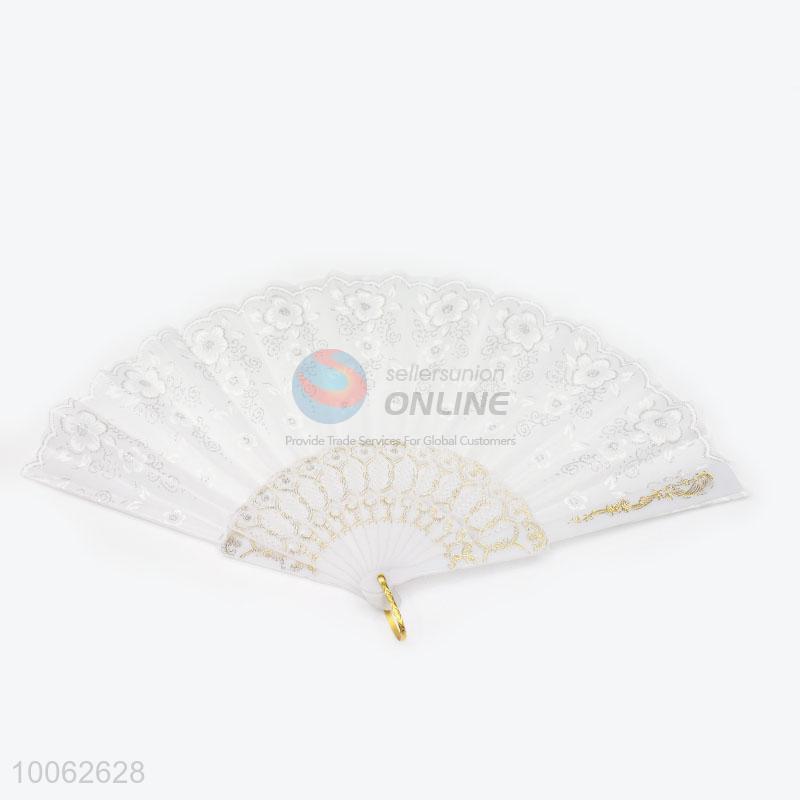White Plastic&Dacron Chinese Style Hand Fan