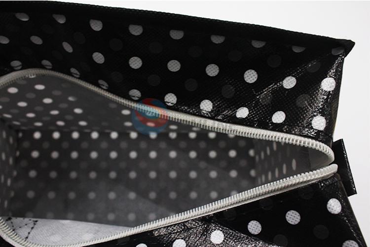 White Dotted Black Zip Lock Non Woven Shopping Bag