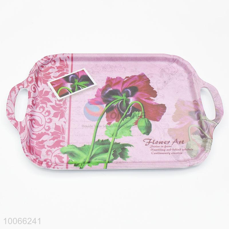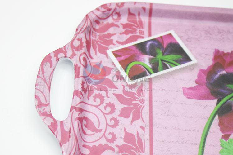 Plastic Melamine Pink Food Serving Tray With Handles