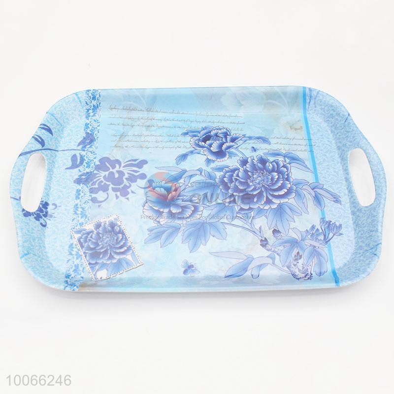 Printed blue plastic melamine serving tray