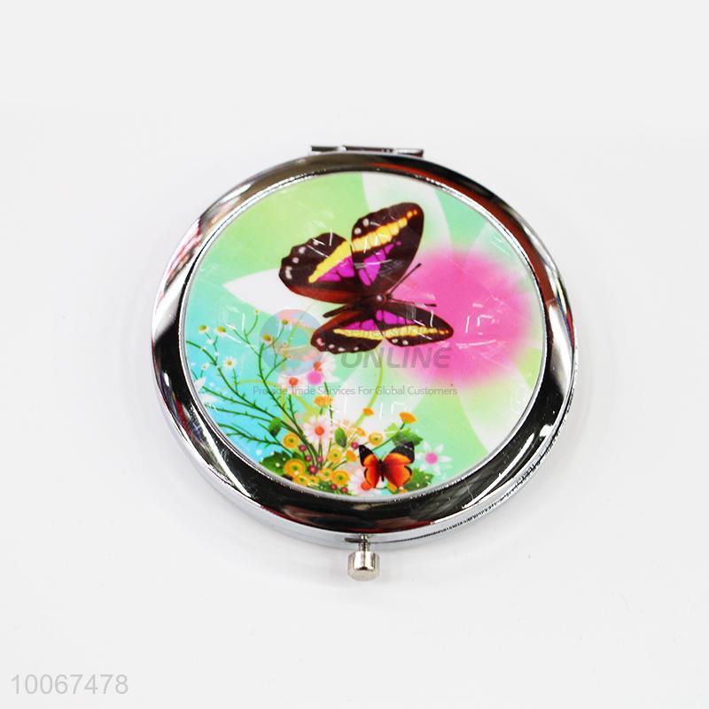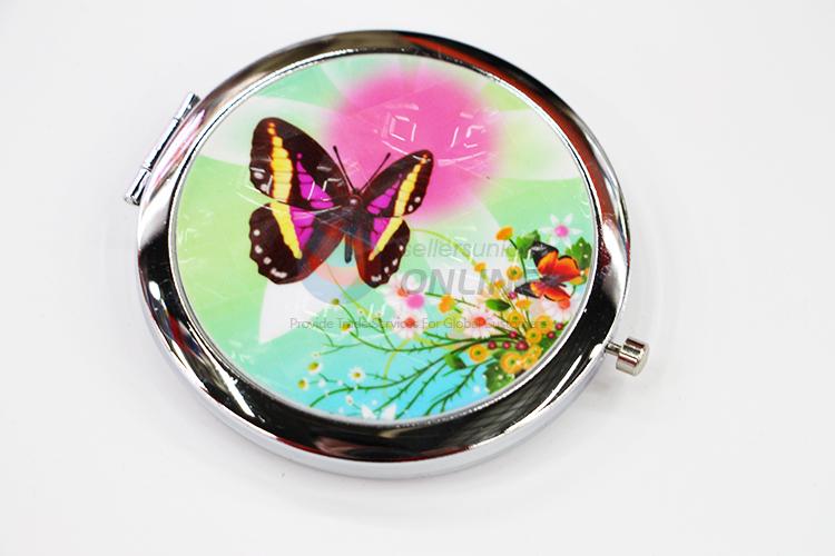 Butterfly Round Foldable Pocket Mirror with Metal Border