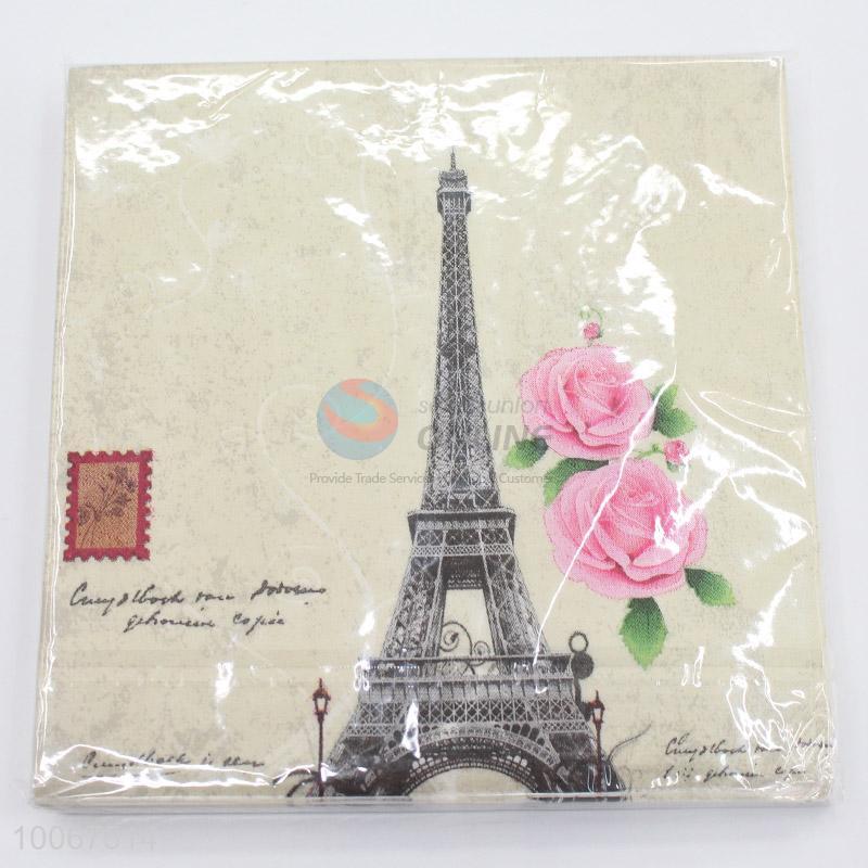 Utility and Portable Dinner Paper Napkin with Eiffel Tower Pattern