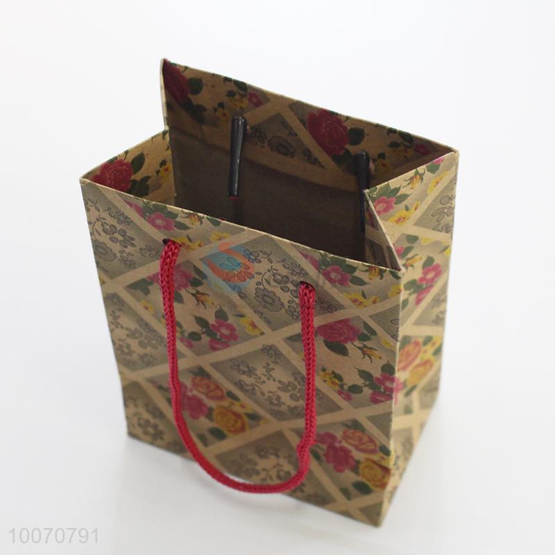 Flower pattern brown paper gift bag