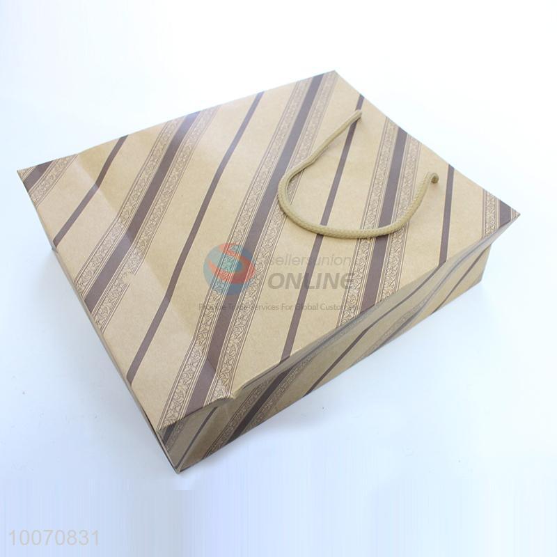 Top quality stripe pattern brown paper gift bag