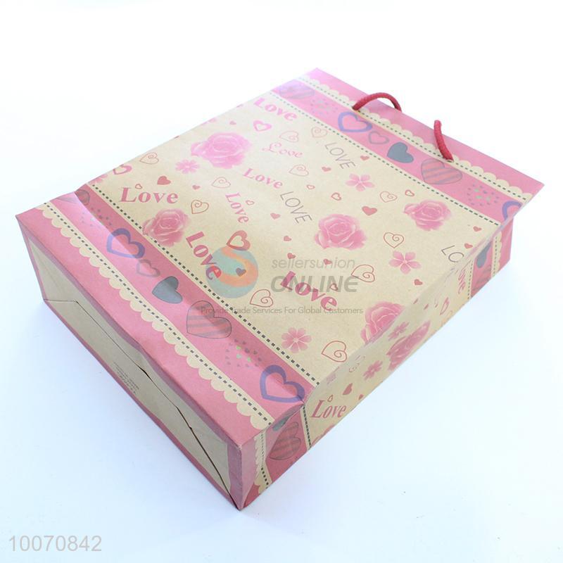 Pink flower pattern kraft paper gift bag/shopping bag