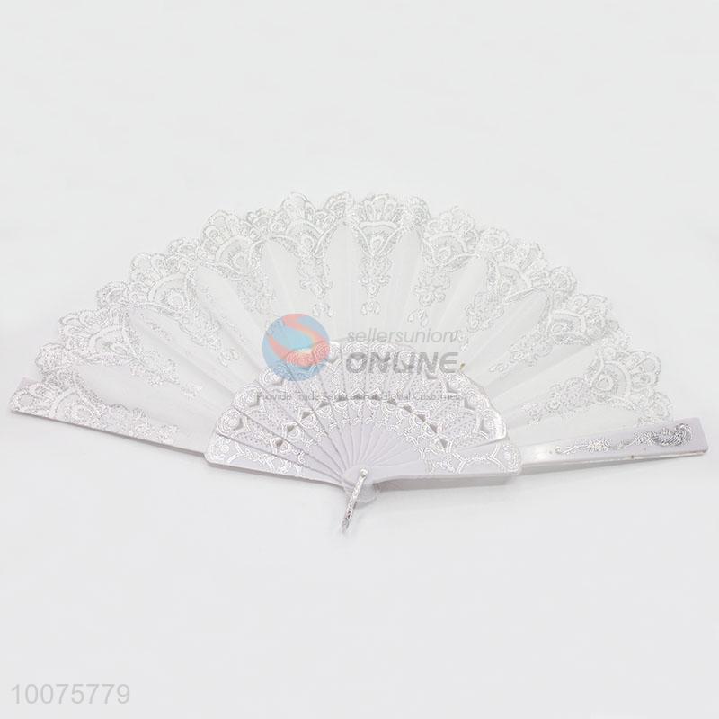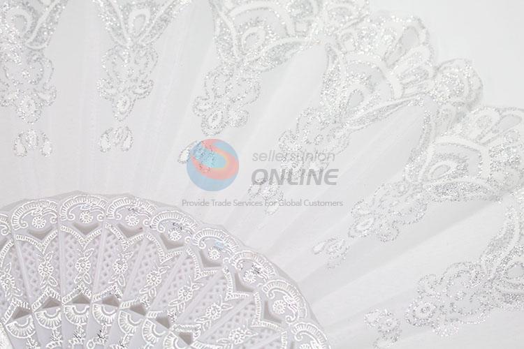 Wholesale White Summer Hand Fan with Flowers Pattern