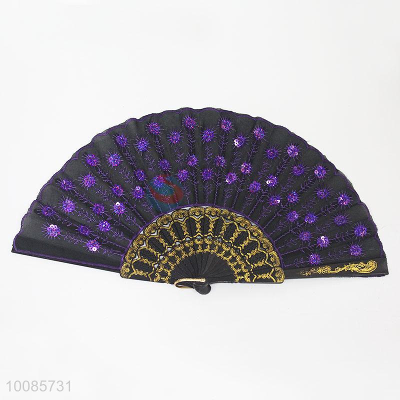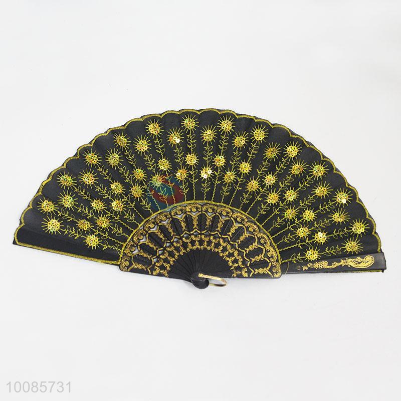 New Arrival Folding Hand Fan with Paillettes for Decoration