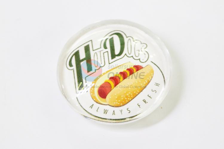 Hot Dogs Round Crystal Glass Fridge Magnet