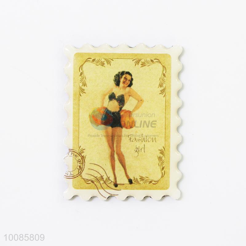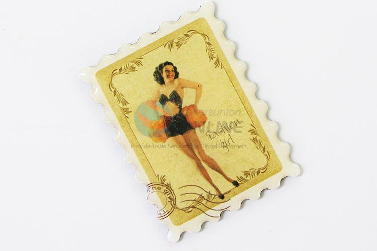 Fashion Girl Postage Stamp Crystal Glass Fridge Magnet
