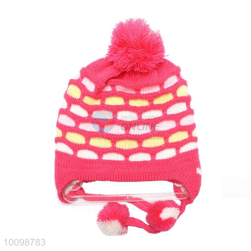 New arrival red ball top knitted hat for girls