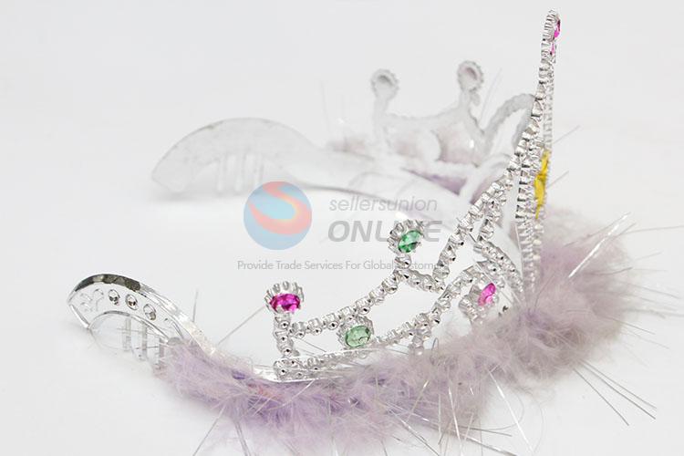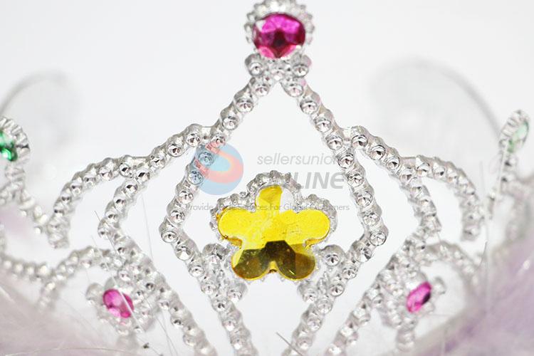 Wholesale plastic tiaras promotional princess crown with feather