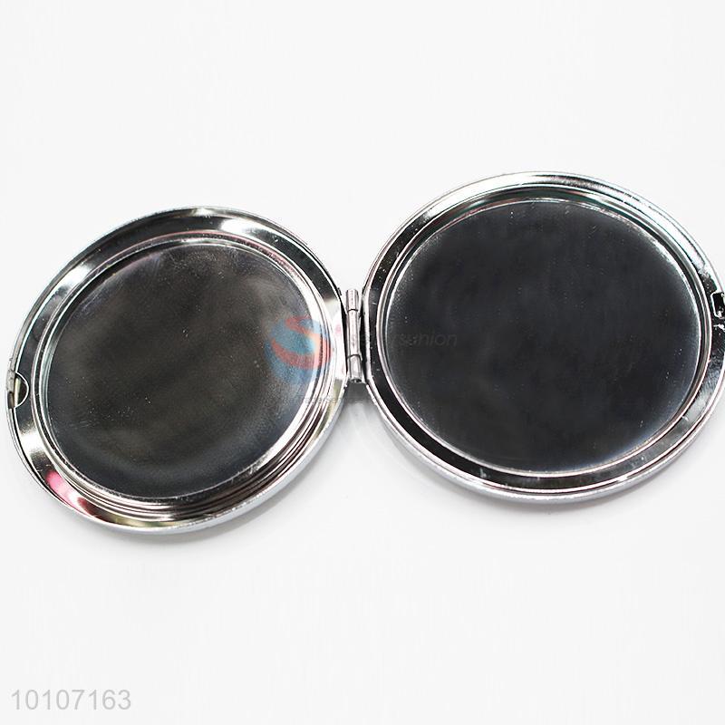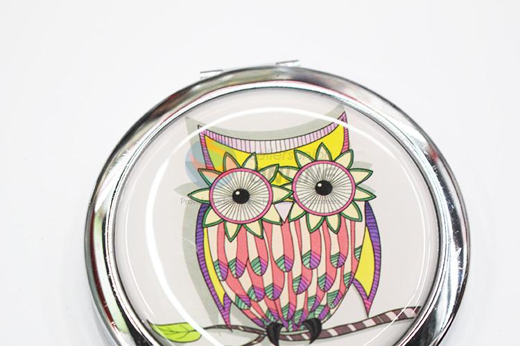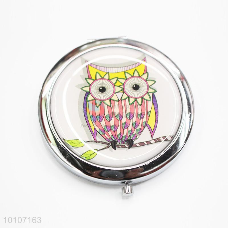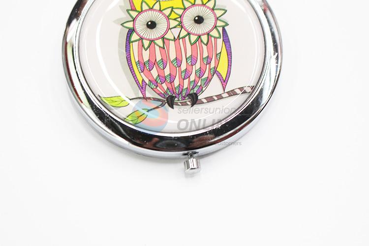 Pink Owl Pattern Round Shape Metal Pocket Makeup Mirror