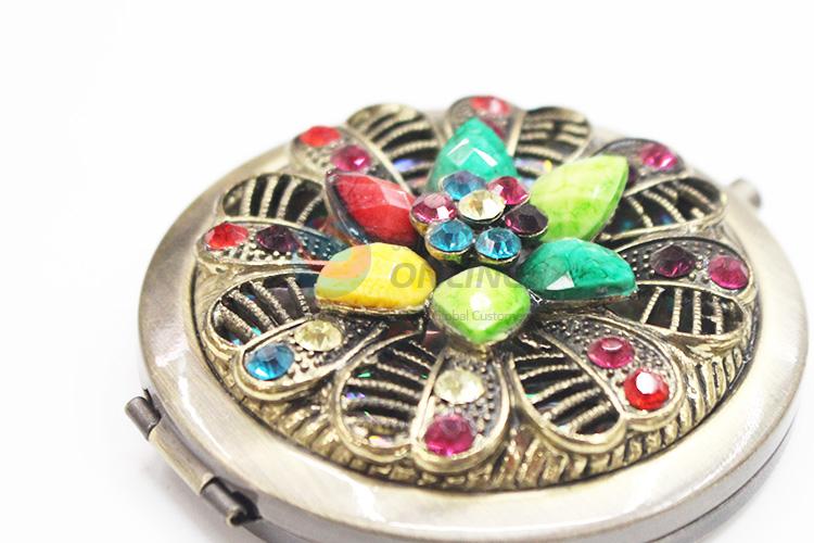 Exquisite Bronze with Colorful Rhinestone Pocket Cosmetic Mirror