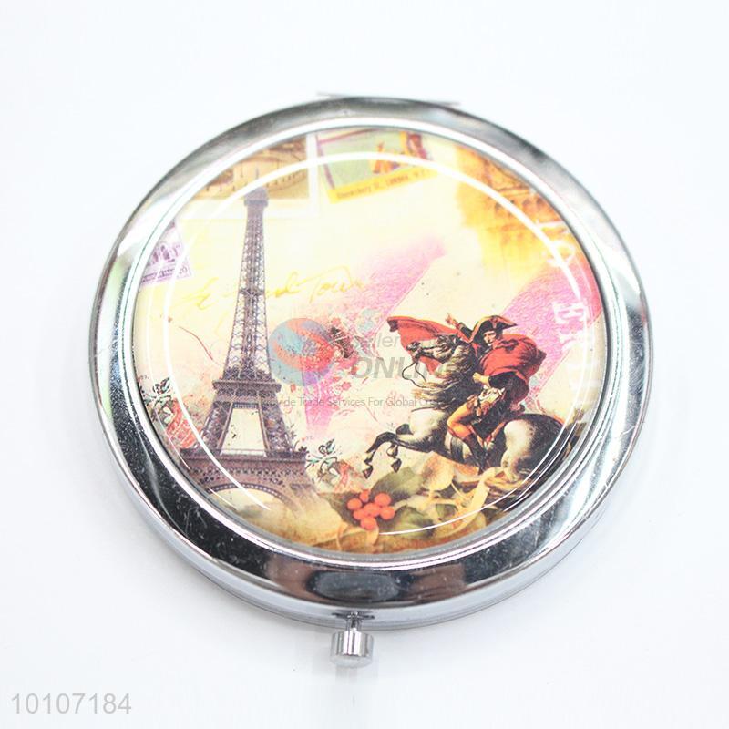 Tower and Hero Pattern Round Metal Pocket Makeup Mirror