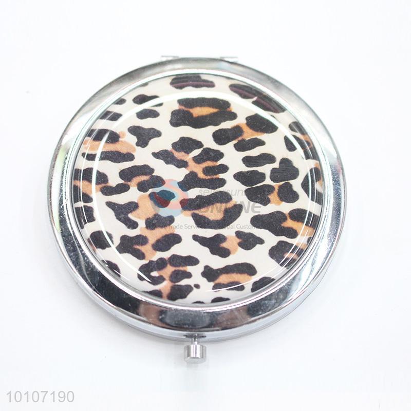 White Leopard Pattern Round Metal Pocket Makeup Mirror