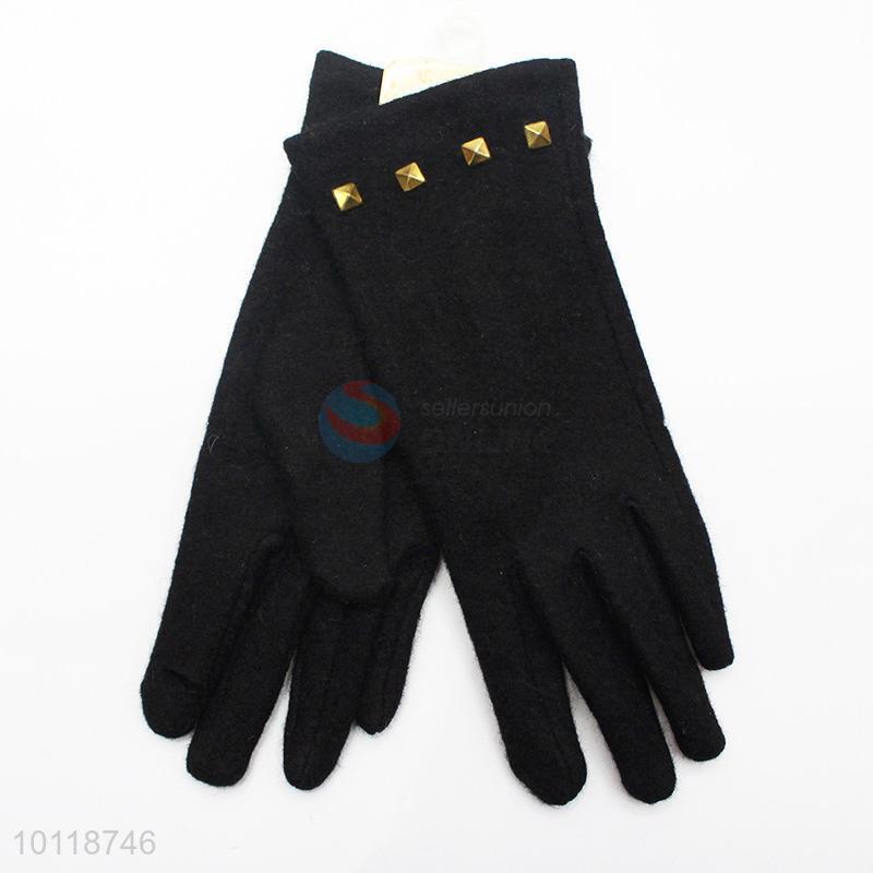 Fashion Women Black Wool Gloves with Rivets