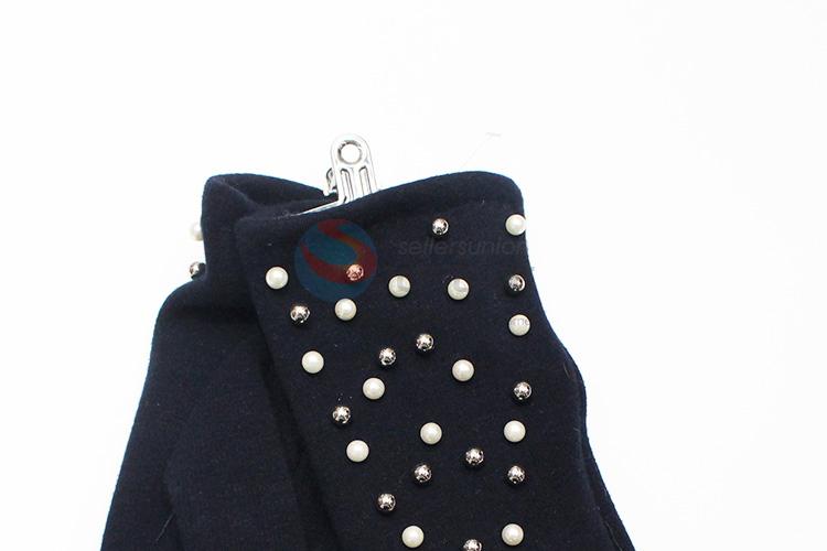 Fashion Dark Blue Mirco Velvet Gloves with Bead