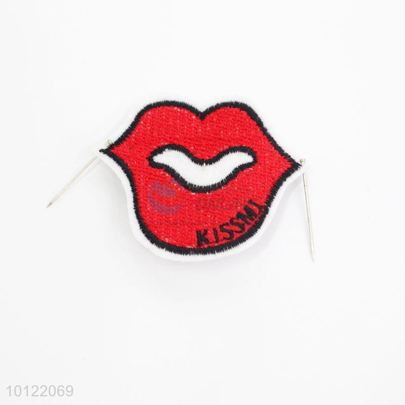 Red Lip Shape Embroidery Clothing Patch