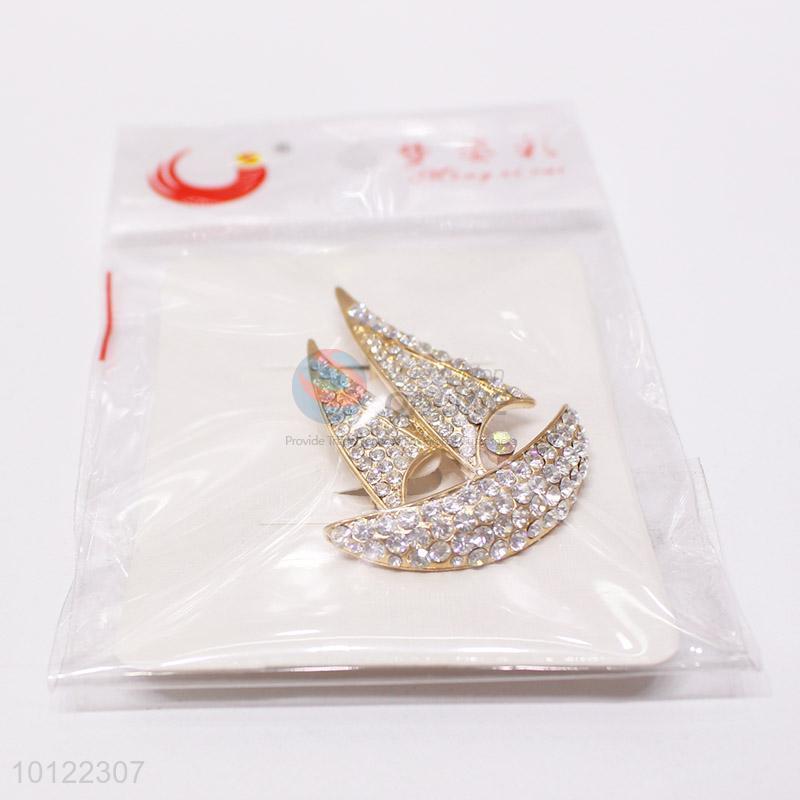 Promotional Sailing Ship Shaped Rhinestone Brooch Pin