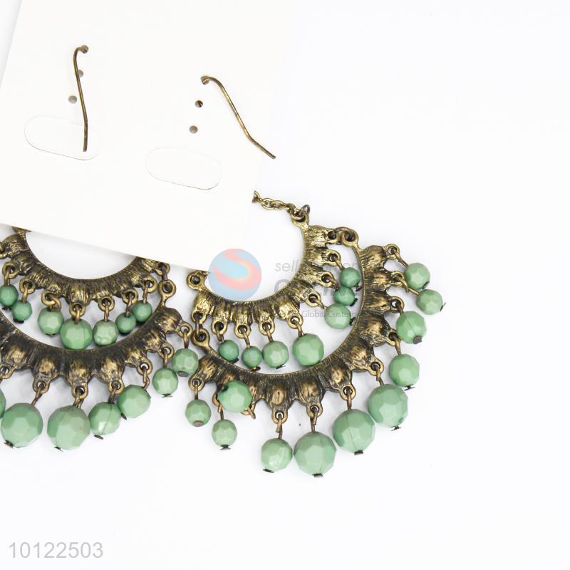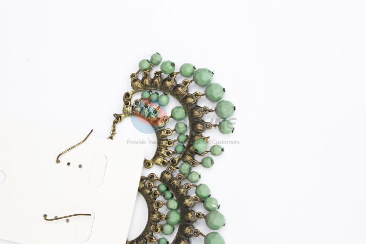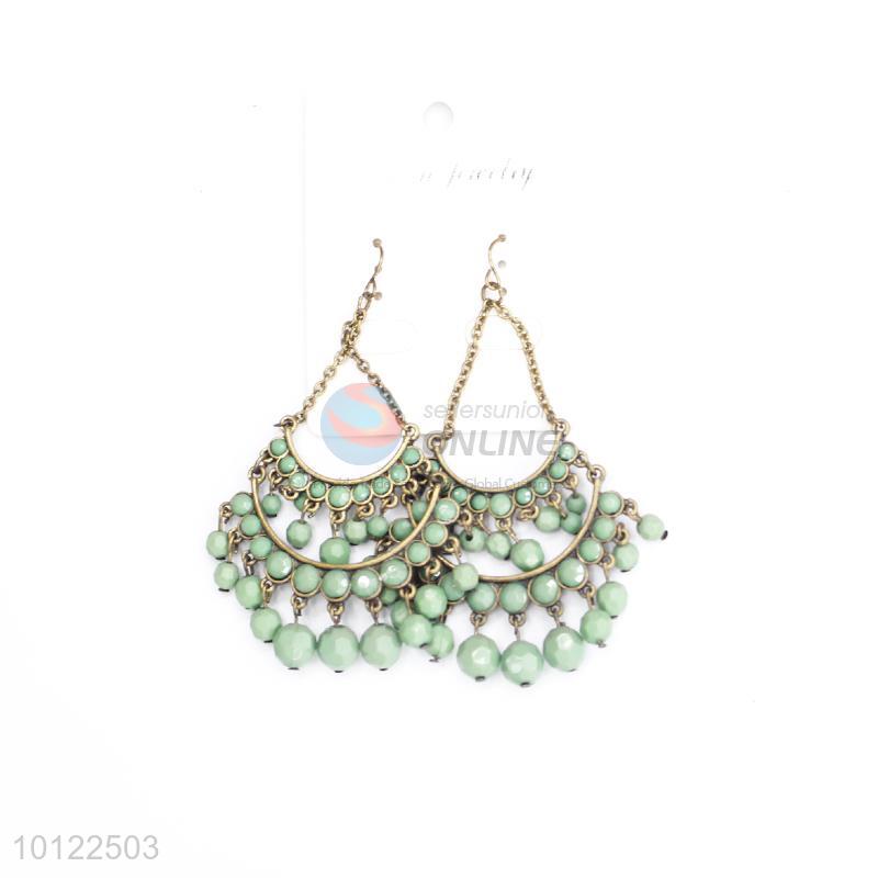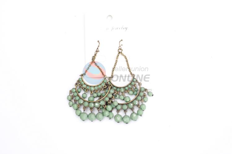Green beads dangle earrings/crystal earrings