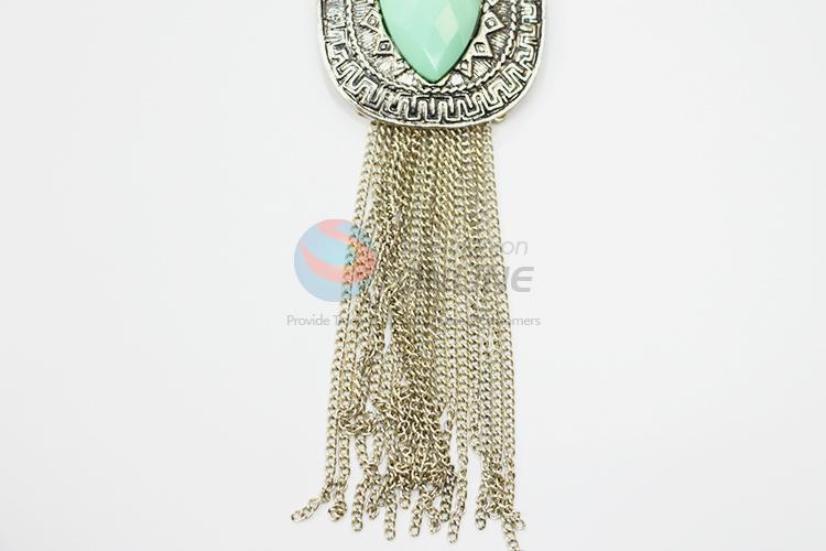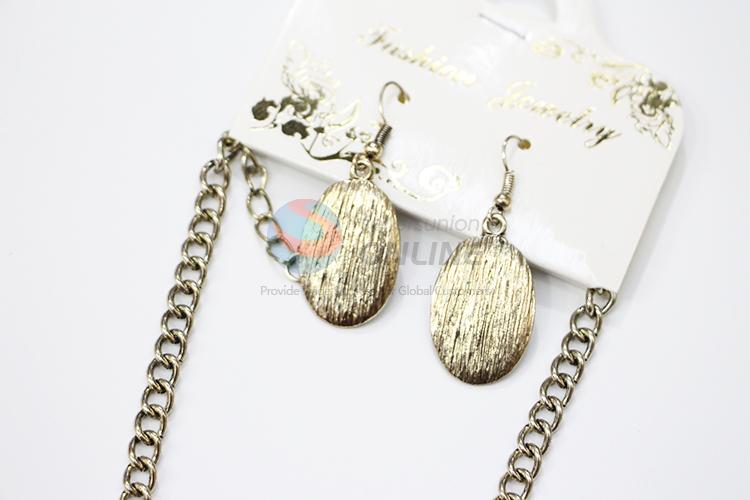 Vintage pattern alloy stone necklace&oval textured earrings set