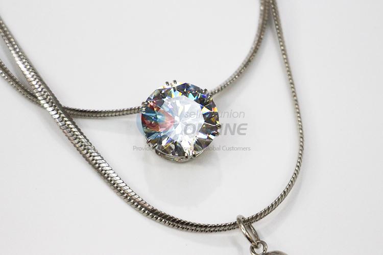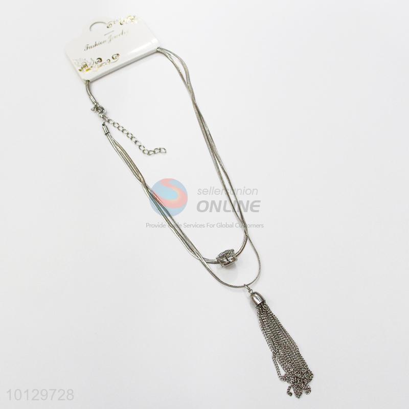 Clear stoned chain tassels silver necklace