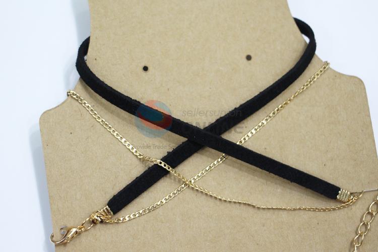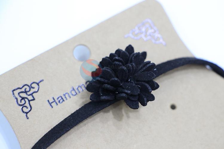 Black suede alloy necklace with black flower