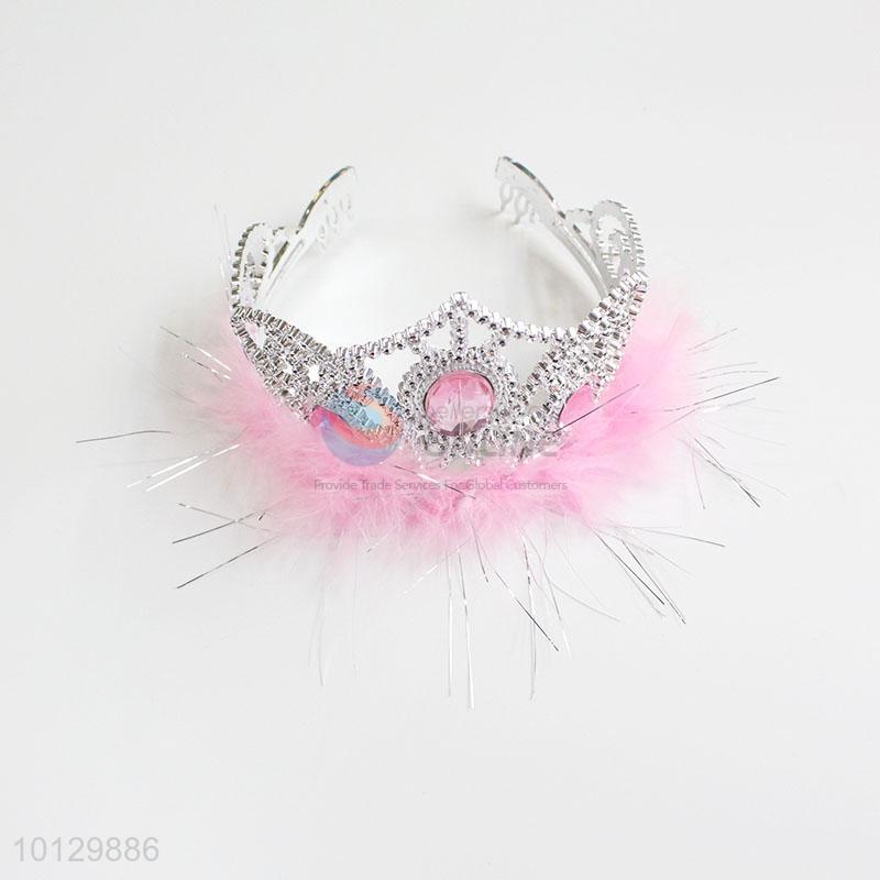 Princess Party Tiara Pink Feather Plastic Crown